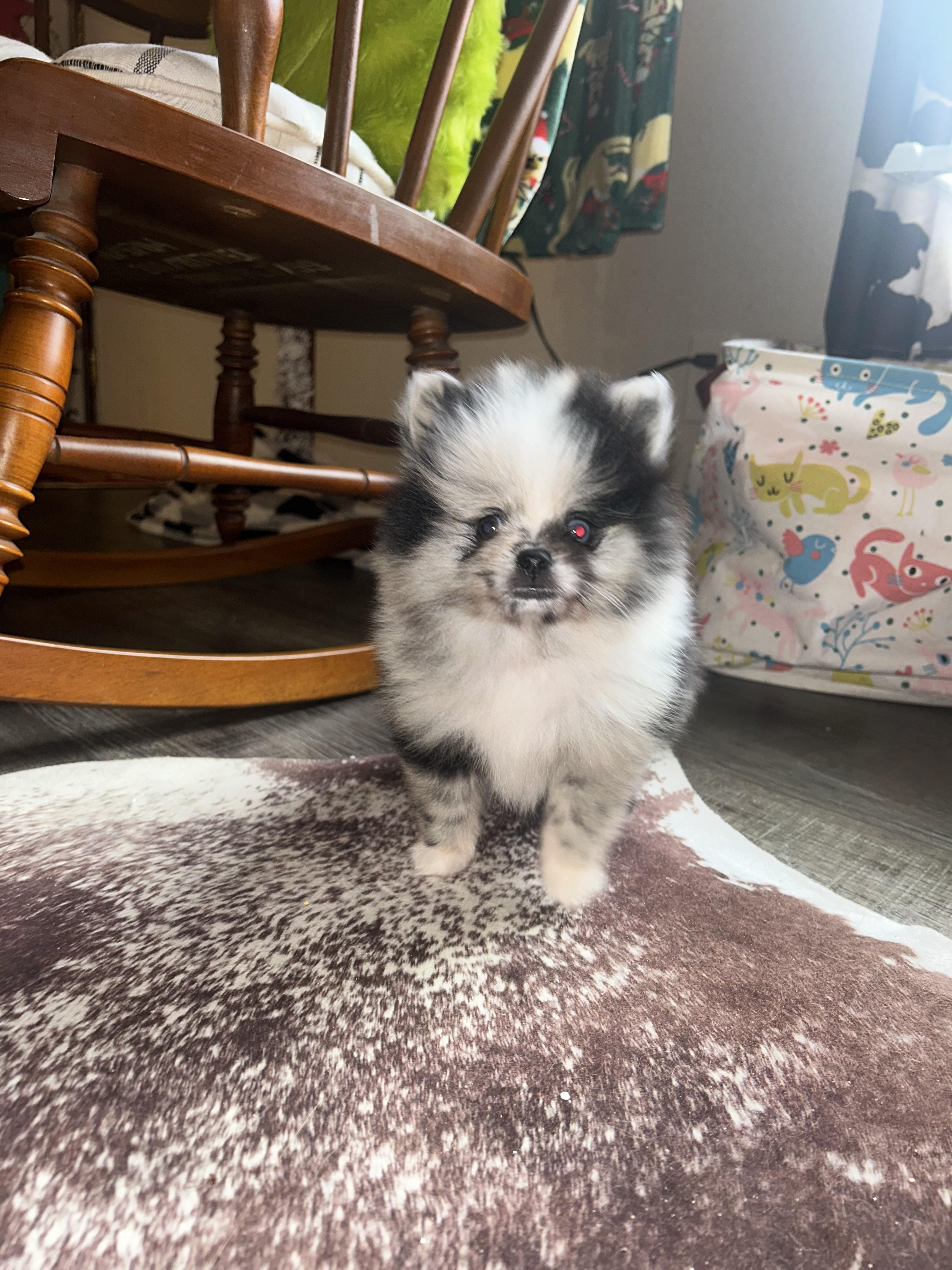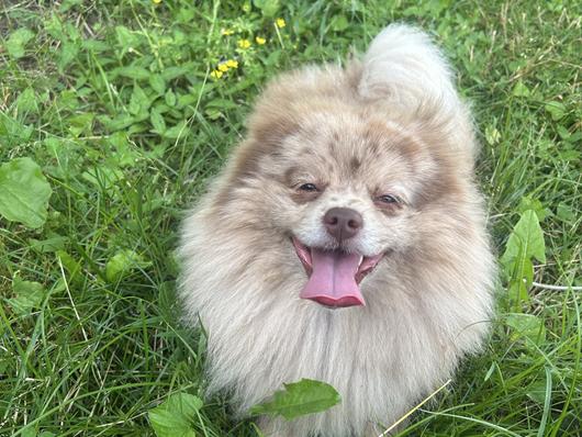 Rocky is a chocolate Merle Pomeranian! He is a chunk and very sweet boy!