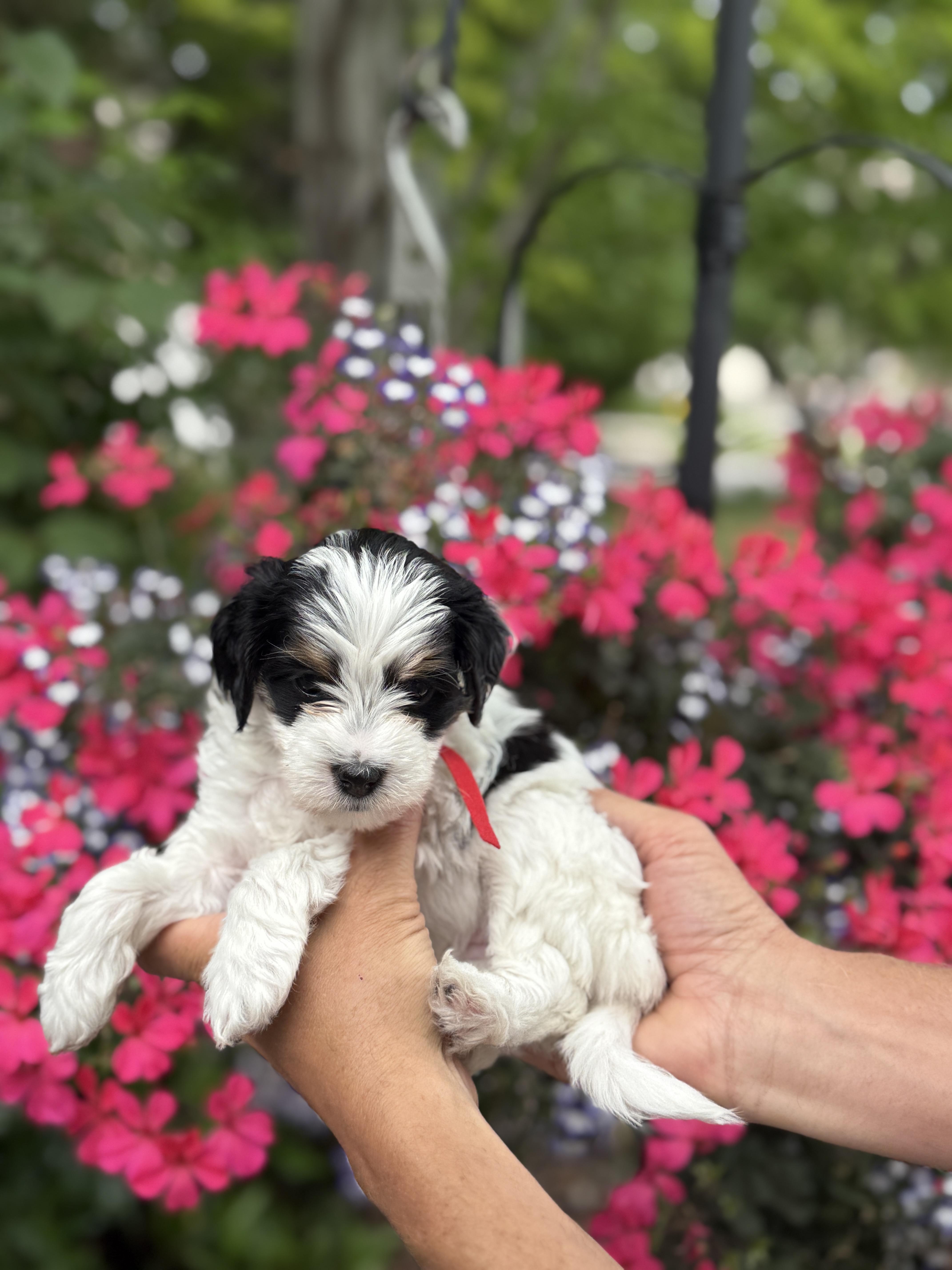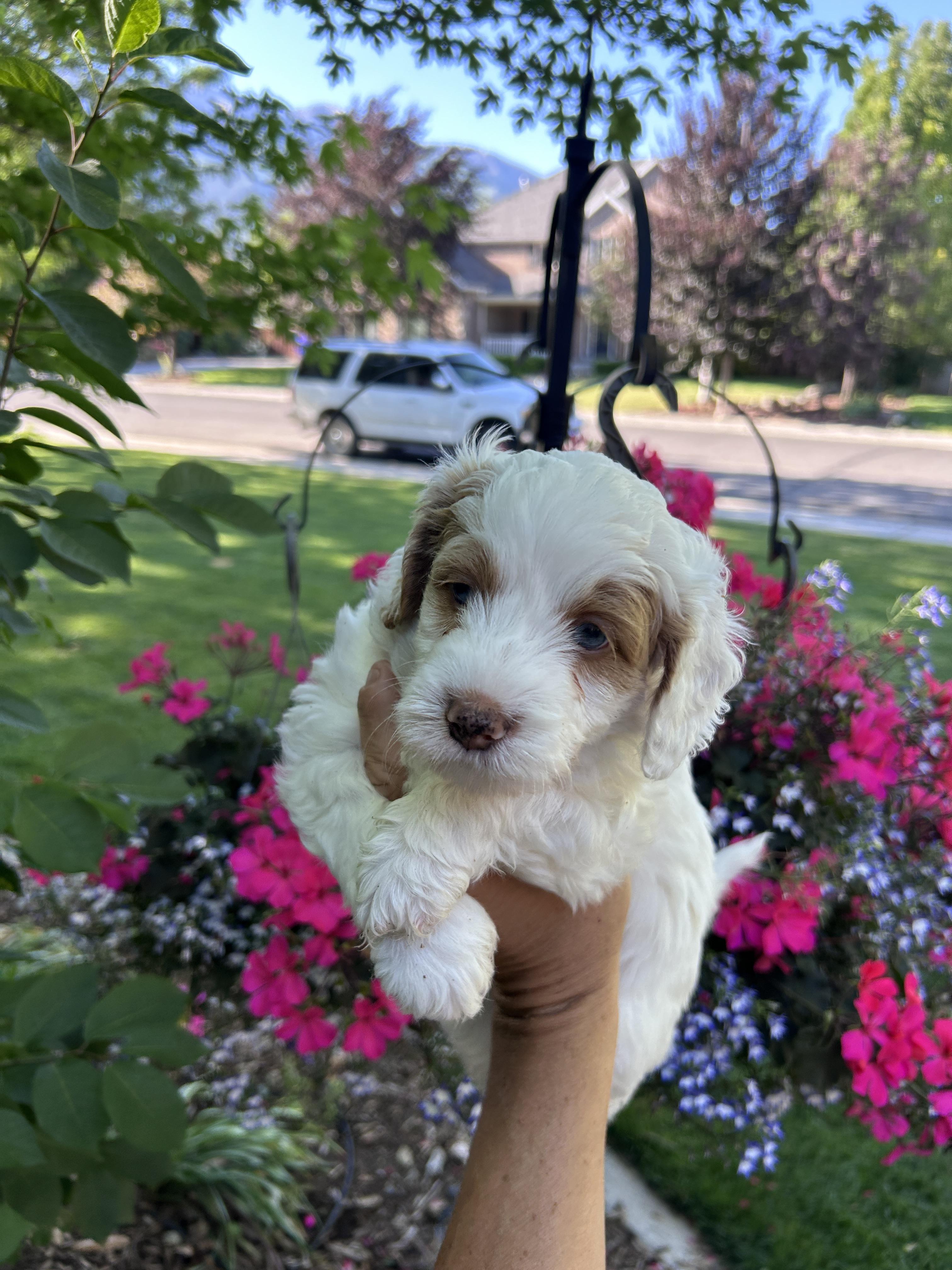 Puppy prices include a $500 non-refundable deposit and between $1,850 - $3,500 final payment, before taxes & fees.