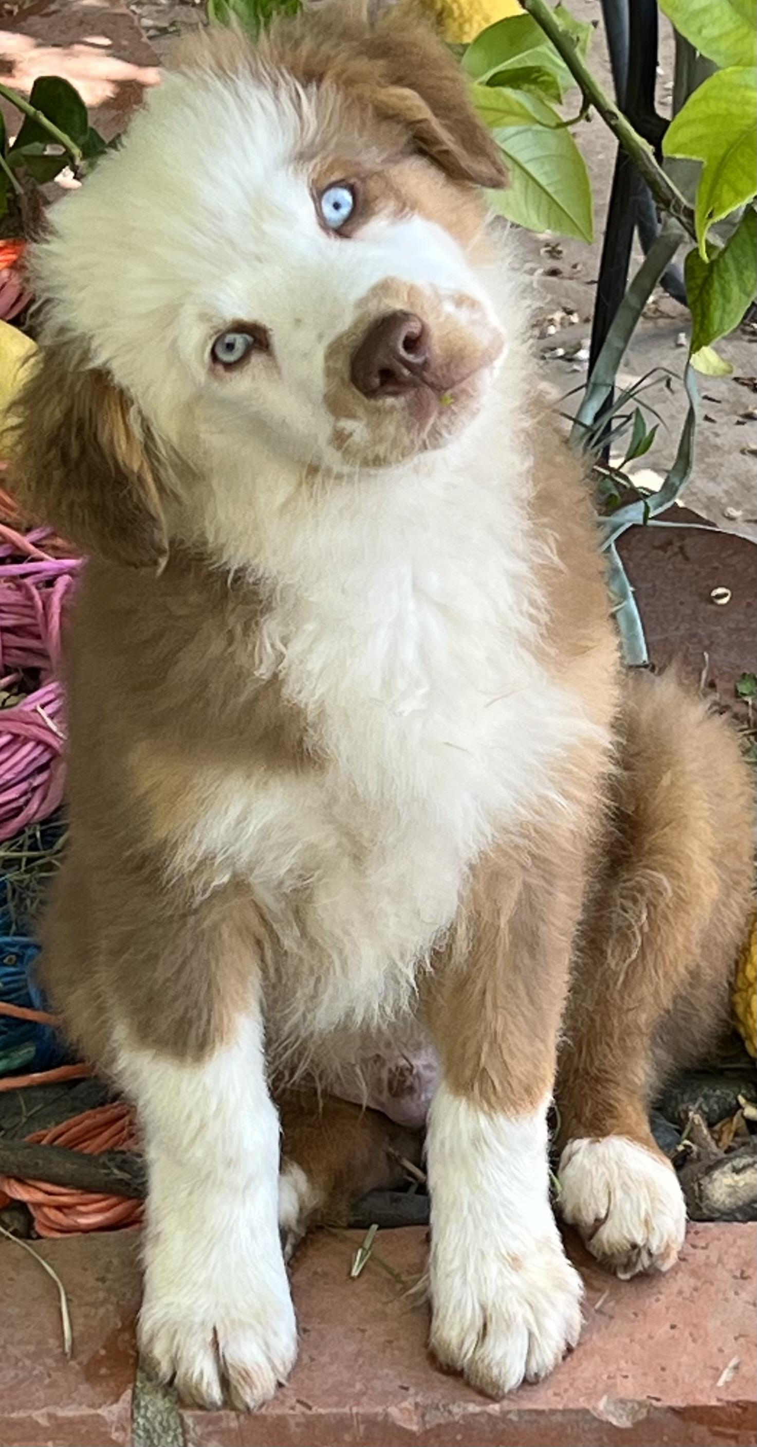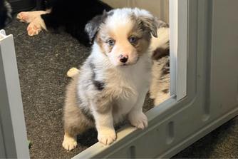 Our puppies include black, red merle, blue merle, and red. Colors will vary depending on the parent dogs.