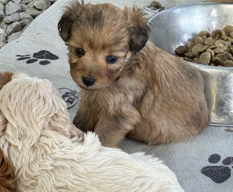 Puppy prices include a $100 non-refundable deposit and between $1,150 - $1,750 final payment, before taxes & fees.