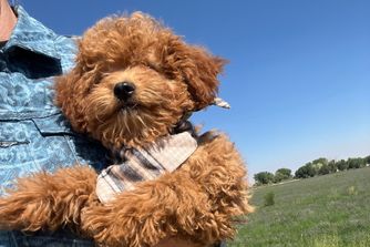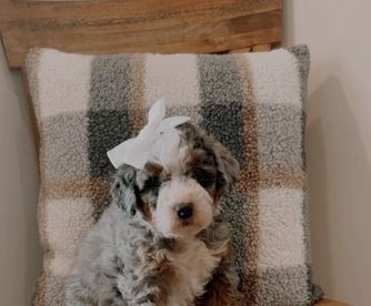 Our Bernedoodle puppies include sable, black and white, tri-color, phantom, blue merle, and merle. Goldendoodle puppies include cream, apricot, and red. Colors will vary depending on the parent dogs.