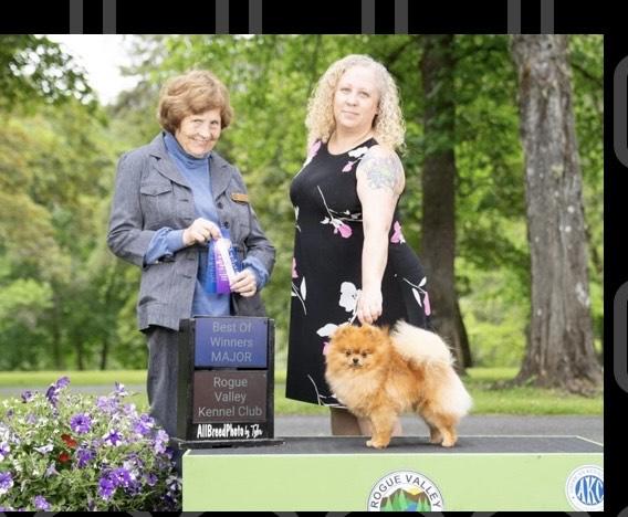 Kerry is a female Pomeranian. Carefully selected as a great representative of her breed, Danielle decided to make her part of their program. Danielle has passed Good Dog’s screening process, which involved a review of their breeding practices, environment, and the mental and physical health of their dogs.