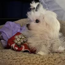 Heather is a Maltese teacup with Korean lineage. She enjoys playing, car rides and walks