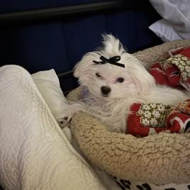 Molly is a DNA tested, purebred AKC Korean Maltese. She enjoys walks around the neighborhood, playing with other dogs and car rides. Molly likes to dances for treats, and loves to be held.
