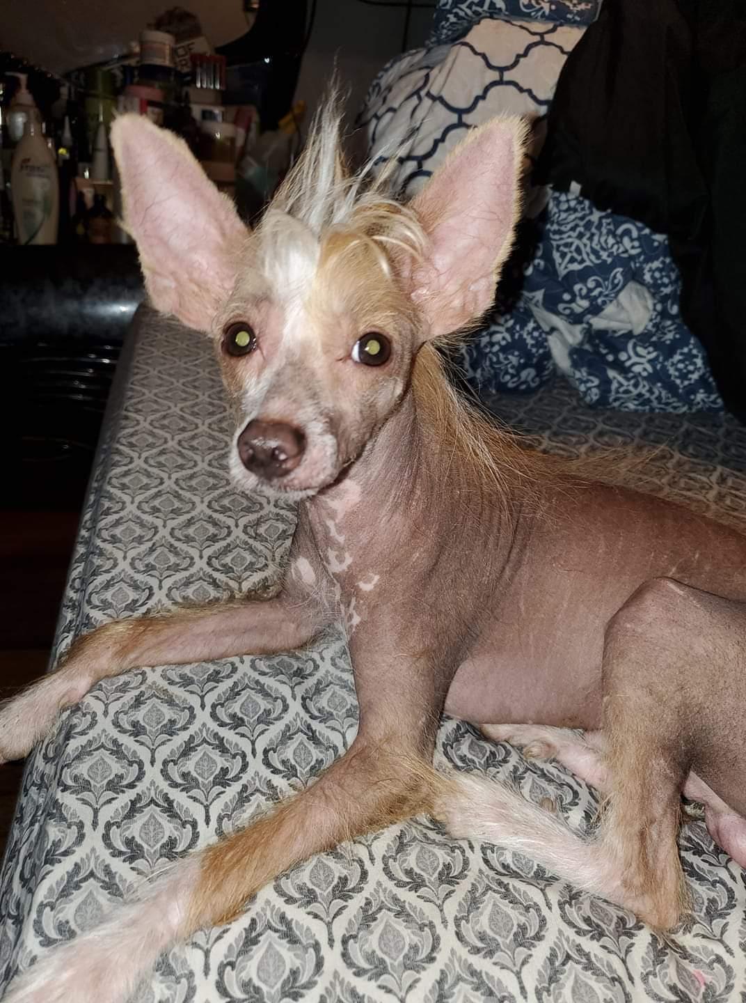 Cleo is a female Chinese Crested. Carefully selected as a great representative of her breed, Robin decided to make her part of their program. Robin has passed Good Dog’s screening process, which involved a review of their breeding practices, environment, and the mental and physical health of their dogs.