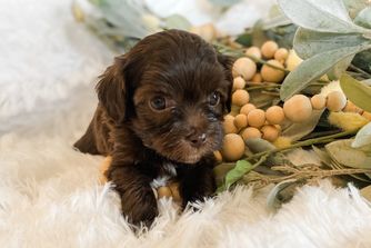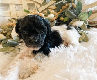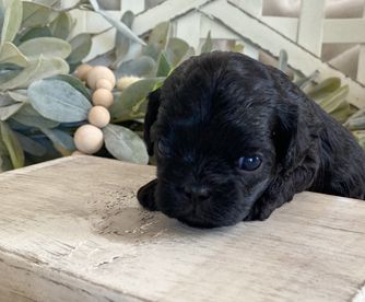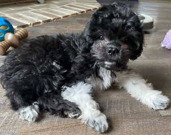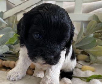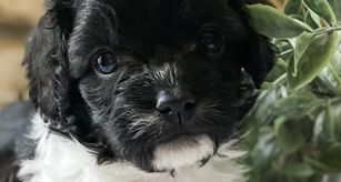 Our Havapoo puppies include chocolate, chocolate and white, and black. Cavapoo puppies include black and white and blenheim. Colors will vary depending on the parent dogs.