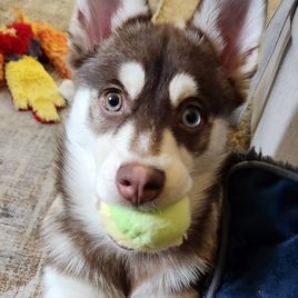 I'm Kristen L., the breeder behind Periwinkle Pomskies located in Auburn, WA. I am a huge animal lover and have a special place in my heart for all my dogs. I provide top-quality beloved companions. Health testing and temperament are the basis of my program and I treasure each puppy I produce and will happily take back any of my babies at any point in their life. I emphasize solid genetics paired with early stimulation and socialization so that our puppies can leave my home with confidence, ready to take on the world with their new family! In addition to raising Pomskies I train dogs professionally and enjoy trialing my border collie mix in different dog sports.