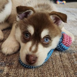 Kristen was so accommodating, letting us visit the pups several times before we decided on our darling Rook. We got to meet his parents and litter mates too. Her dogs all seem healthy, happy and well loved. We couldn't be happier with our Periwinkle Pomsky!