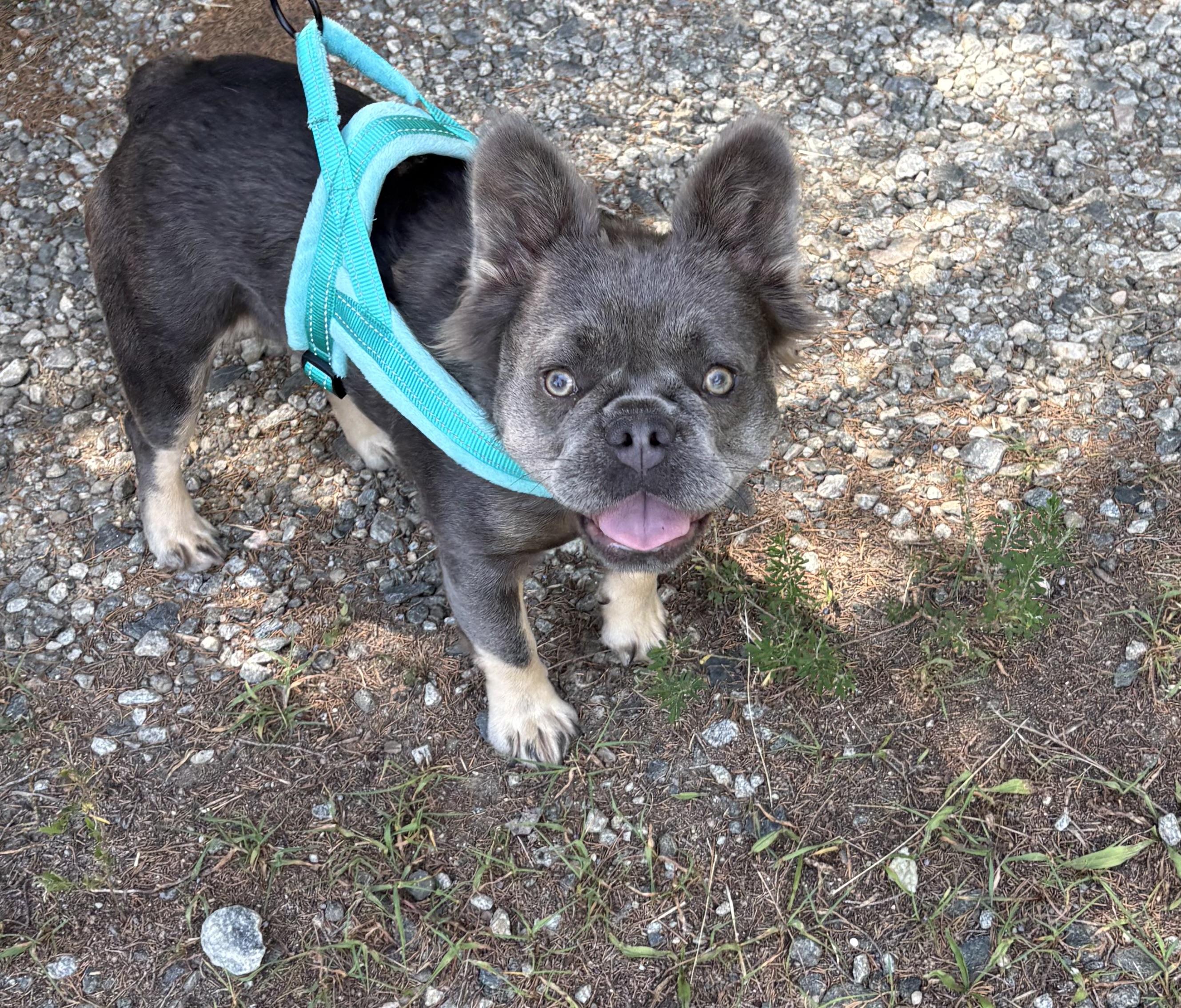 Lu is a female French Bulldog. Carefully selected as a great representative of her breed, Dovie decided to make her part of their program. Dovie has passed Good Dog’s screening process, which involved a review of their breeding practices, environment, and the mental and physical health of their dogs.