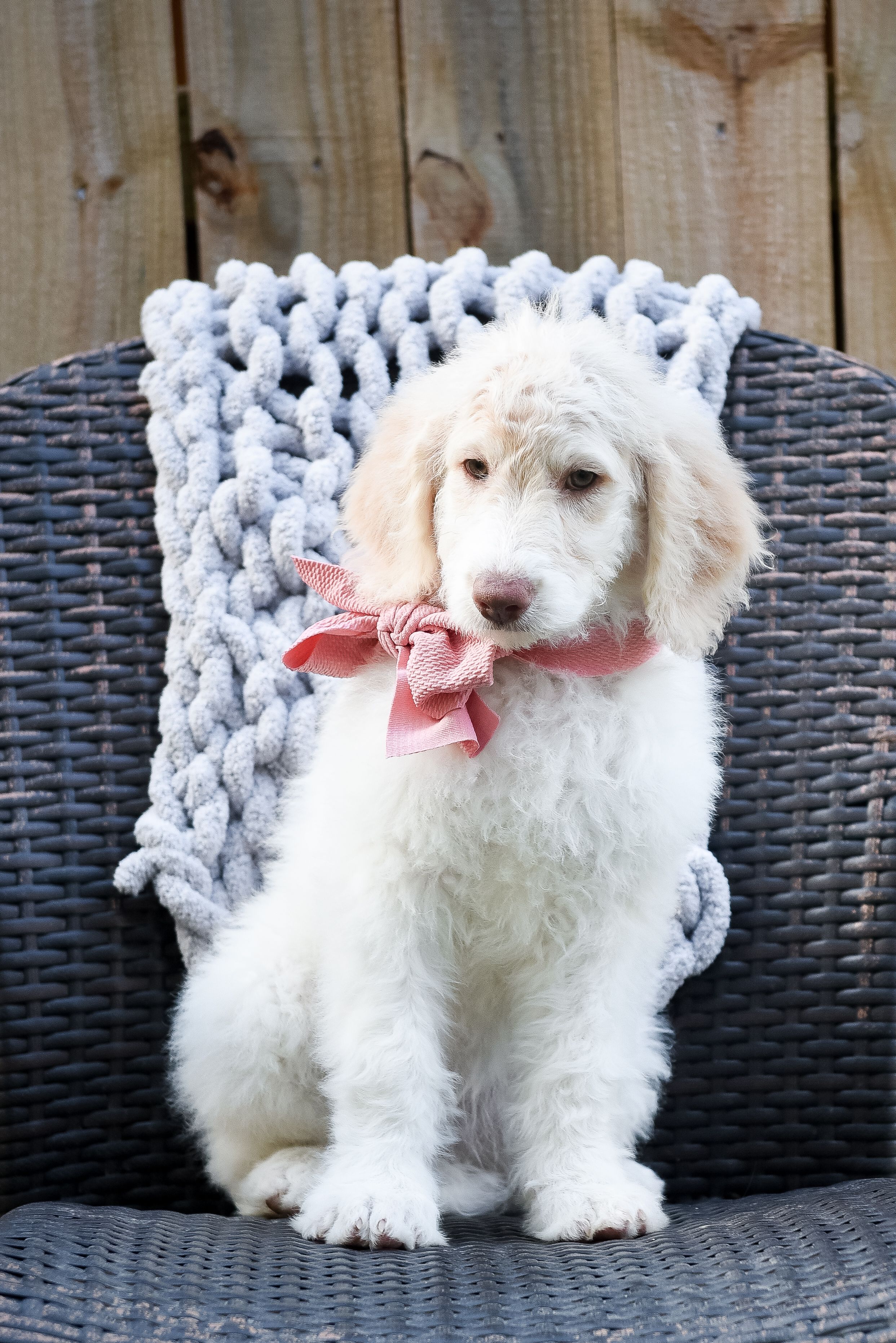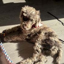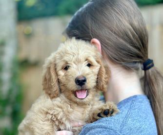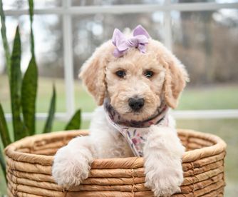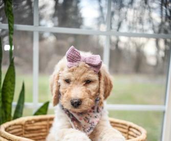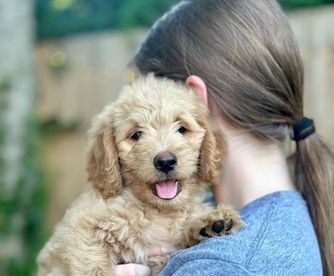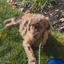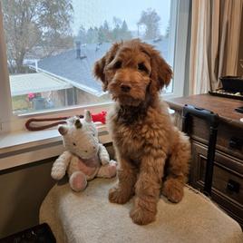 Working with Darlene was everything we could have hoped for. We live far away, but she was still willing (and eager) to accommodate our situation. The care Darlene has for her puppies is evident in everything that she does. Our little Hazel was already well adjusted to new sounds and puppy handling when we picked her up, and Darlene made sure to send us off with plenty of food, toys, and smells to help her transition. Hazel is the sweetest little girl ever, but has her “hazelnut” moments when it comes to play! She is incredibly smart and has caught on quickly to her training. Thank you, Darlene and Perks Court Doodles for making this experience so great! 😊