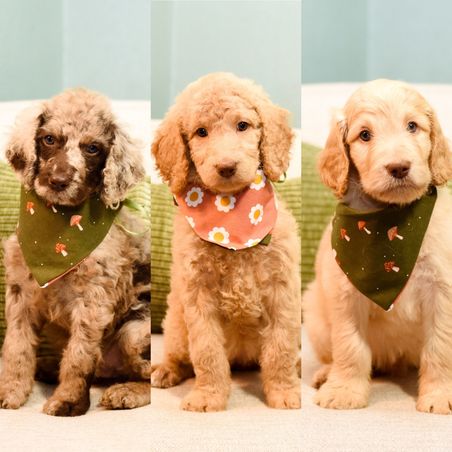 Our puppies include cream, apricot, red, chocolate, black, merle, and parti. Colors will vary depending on the parent dogs.