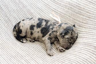 We start with only breeding healthy, well temperamented dogs. Our program is in our home, which allows us to provide our puppies with the best start to their lives. We start our puppy training and exposure program at 3 days old and continue it through go home day. Our goal is to provide families with a well rounded, sweet puppy that will fit well into any family for them to love forever!