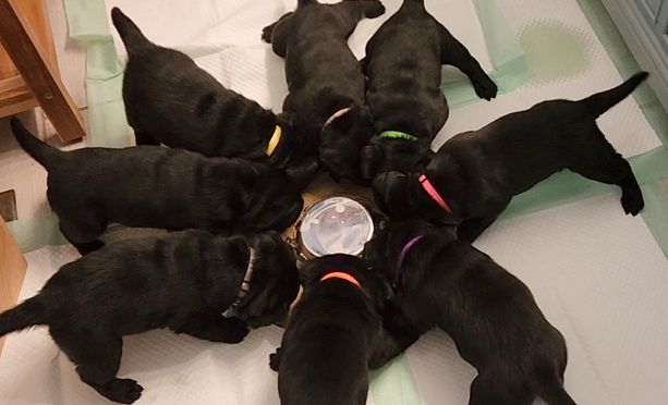 Our puppies include black, chocolate, and yellow. Colors will vary depending on the parent dogs.