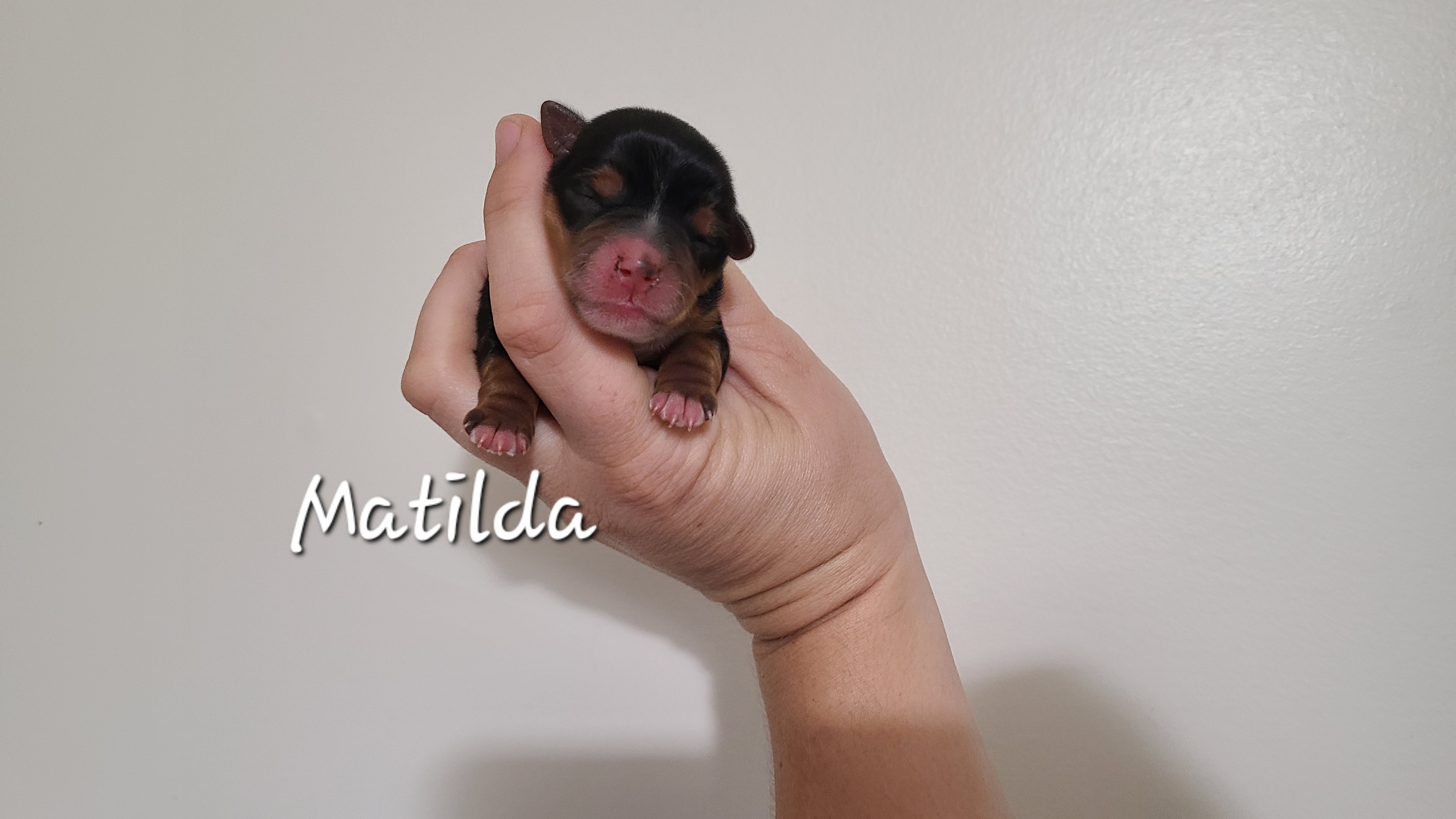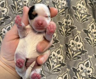 AKC Registered. Embark DNA & Health tested clear. Cookie is gentle natured and loves morning walks. She has a calm demeanor and loves snuggles. She loves being held on her back like a baby. Cookie is extremely smart and loves to do tricks for treats. She is an excellent momma and takes excellent care of her babies.