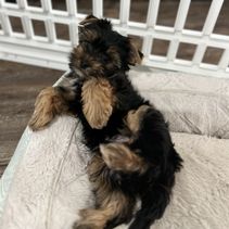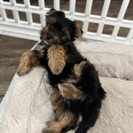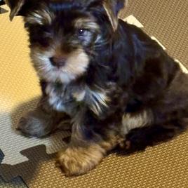 Teddy is a small stocky little boy. He is a Tradional black and tan Yorkie. He is loves to snuggle and is extremely affectionate. Teddy loves everyone. Teddy is very smart and likes to play ball and do tricks for treats.