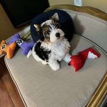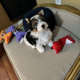 From the very beginning, working with Julie has been an absolute perfect experience. I spent nearly a year researching breeders, and ultimately chose Julie because of her exceptional breeding program, extensive health testing, and the strong pedigrees behind her dogs. It was immediately clear that she holds herself to the highest standards — not just in producing beautiful puppies, but in doing so responsibly and ethically. She stayed in close contact with us for months before pickup, sending detailed updates, photos, and videos that made us feel like we were part of Enzo’s journey from day one. It’s clear how much love and intention she pours into raising her puppies — Enzo came to us happy, healthy, and incredibly well-adjusted. He’s truly exceptional. He potty trained himself within a few minutes of learning where the grass was, slept through the night from the start, and has the sweetest, smartest, most loving temperament. Watching him bond with our other dog has been pure joy, and we can’t imagine our home without him. Even after we brought Enzo home, Julie has remained incredibly supportive — checking in, answering questions, and genuinely caring about how he’s doing. That kind of post-pickup commitment is rare and speaks volumes about her dedication to her puppies and the families they go to. If you’re looking for a Biewer Terrier and want a breeder who goes above and beyond, Julie is the one. She doesn’t just raise puppies — she raises companions, with heart, integrity, and a lifetime of support. We’re beyond grateful.