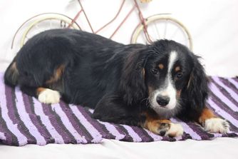 Companion Cross puppies have long coats. Coat types may vary depending on the parent dogs.