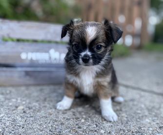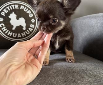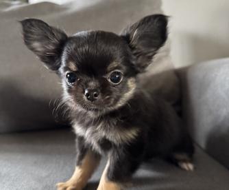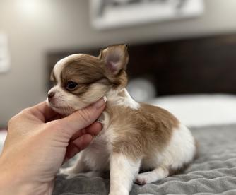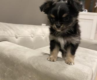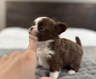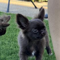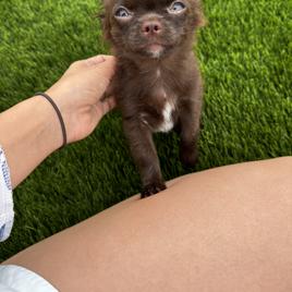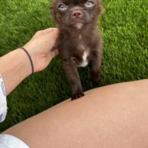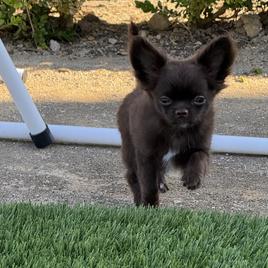 Meet Bruno, a charming and energetic chocolate and tan long-haired Chihuahua with AKC registration. While he's a bit skittish at first, Bruno quickly warms up to people and loves being around them. His playful nature makes him a hit with kids, and he's always ready for fun. Bruno is small, speedy, and has a remarkable ability to jump like a deer, showcasing his agility and athleticism. A true little powerhouse with a heart full of affection!