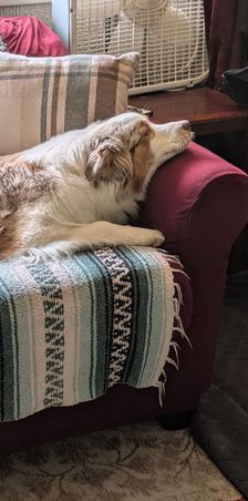 Corsen is officially 4 weeks away from her due date! We have a follow up ultrasound in a week and a half to make sure everyone is developing well. She's starting to look a little more rotund, and also seems to think she's starving 🤣 she's enjoying being a couch dog (we haven't been letting her rough house with the boys, they tend to get a little rowdy) and taking independent trips down to the river to swim.
