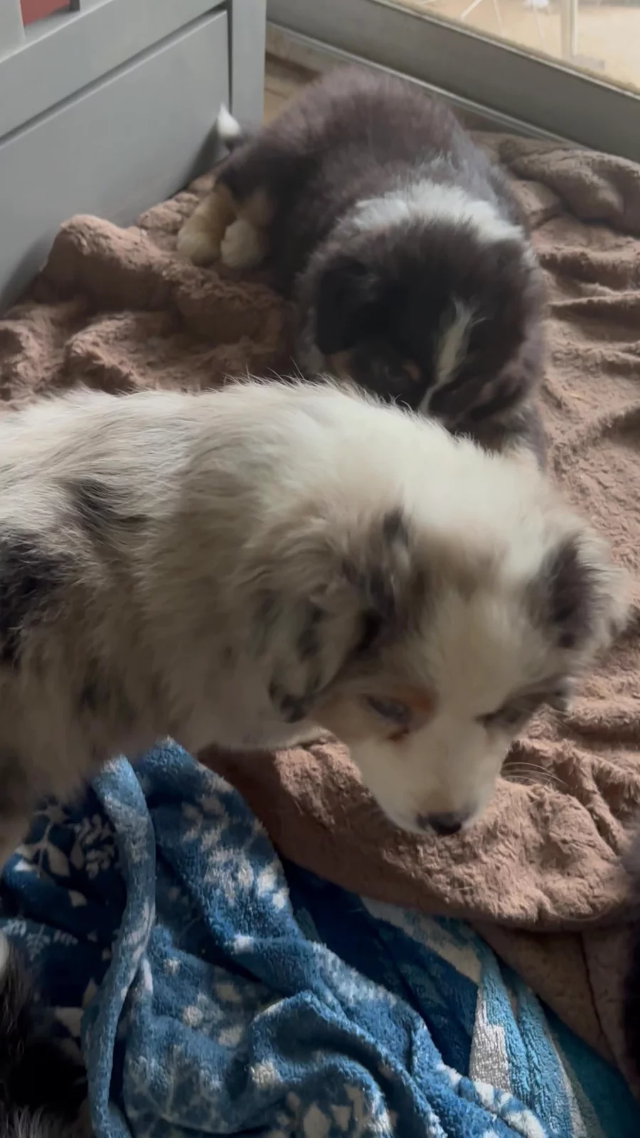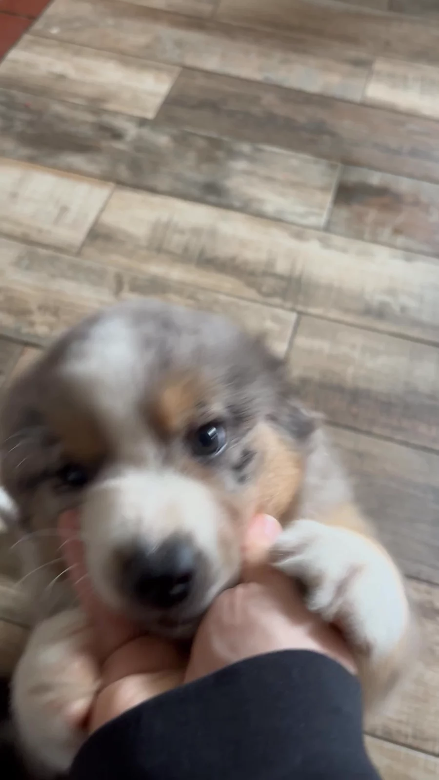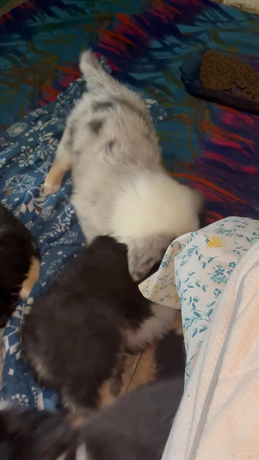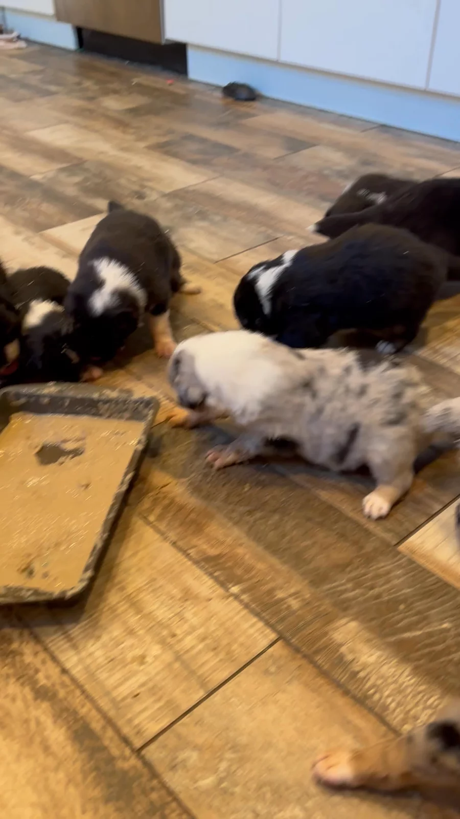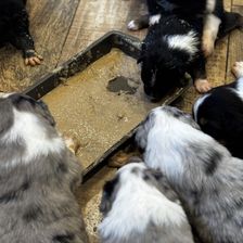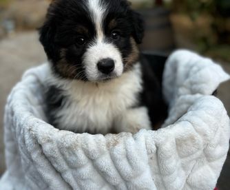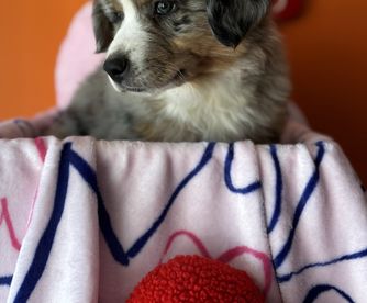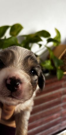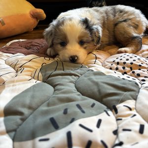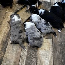 Our puppies include blue merle and black tri-color. Colors will vary depending on the parent dogs.