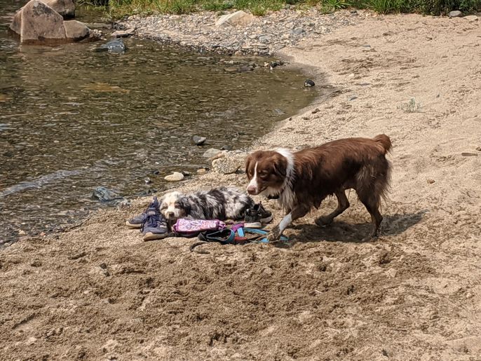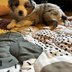 Our aussies are special because they are raised within the home and underfoot!. They are exposed to and socialized within homelife chaos which includes other adult dogs, cats, chickens, kids and whatever life throws. We include our adult dogs in day to day activities alongside their pups; they are ‘spoiled’, well loved and well traveled dogs.