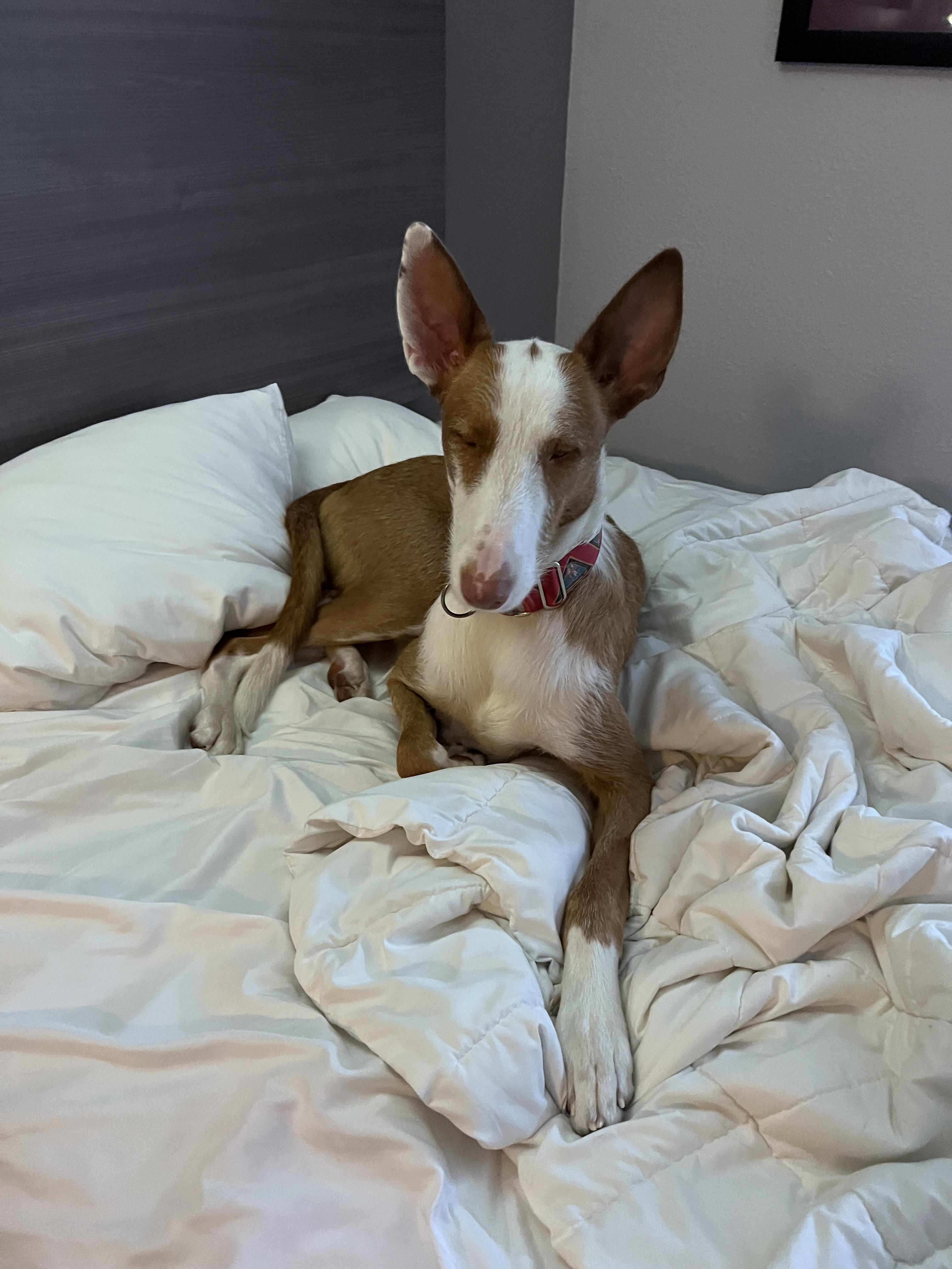 Hope is a female Ibizan Hound over 3 years old. Carefully selected as a great representative of her breed, Kelly decided to make her part of their program. Kelly has passed Good Dog’s screening process, which involved a review of their breeding practices, environment, and the mental and physical health of their dogs.