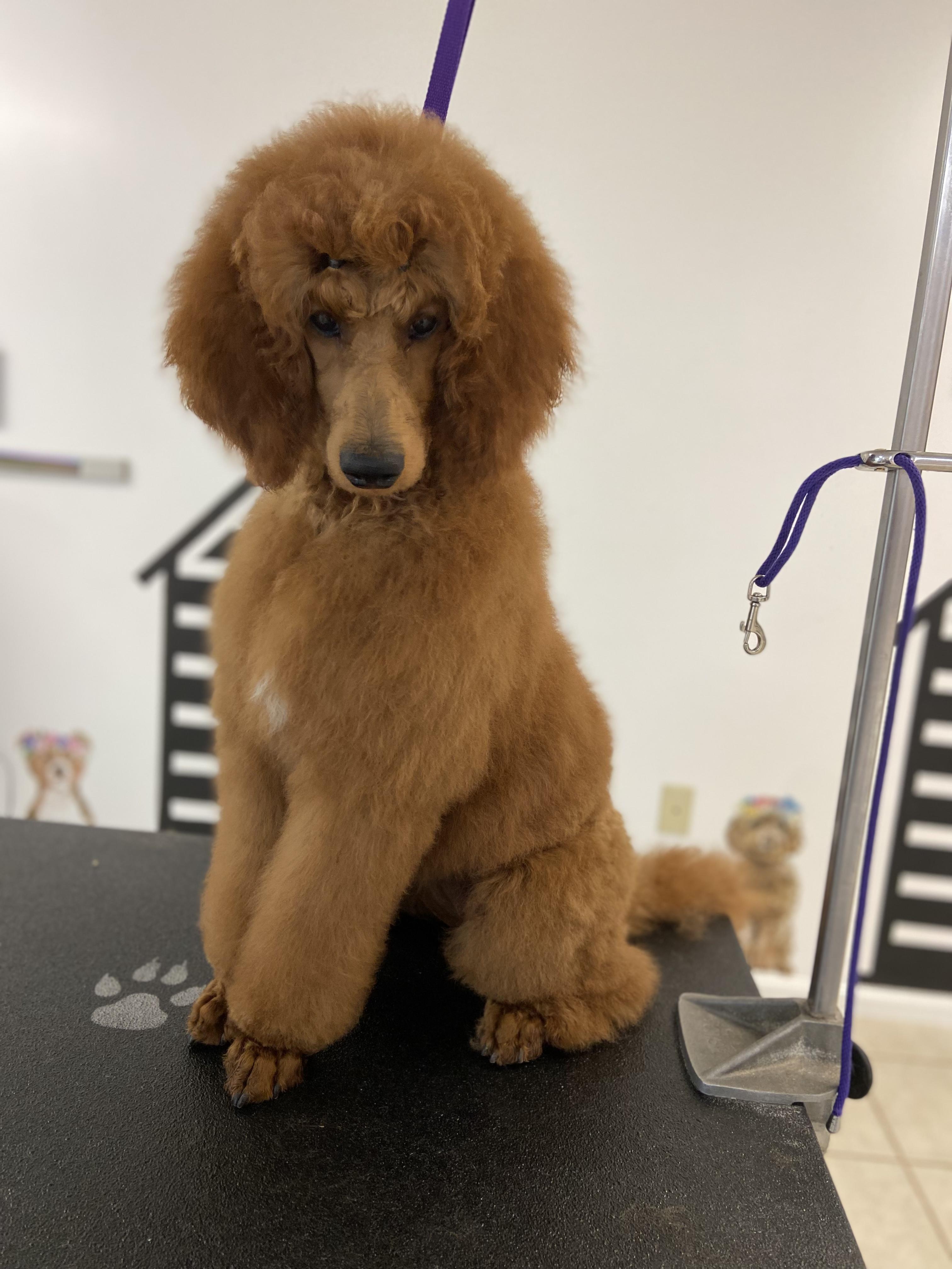 Coco Chanel is a female Poodle about 5 years old. Carefully selected as a great representative of her breed, Morgan decided to make her part of their program. Morgan has passed Good Dog’s screening process, which involved a review of their breeding practices, environment, and the mental and physical health of their dogs.