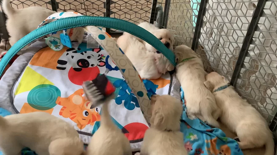 Encho's bloodline comes from the Ramchaine & Hellacious Acres family. Ramchaine & Hellacious Acres are well-known, established breeders of English/European-style Golden Retrievers. They are recognized for producing show-quality dogs, many of which have earned multiple national and international champion titles across Europe. Encho has a very sweet and calm temperament. He loves to play with his stuffed animals.