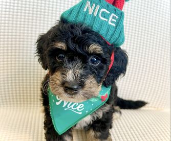 Goldendoodle puppies include cream, apricot, red, chocolate, black, merle, and parti. Bernedoodle puppies include tri-color and merle. Colors will vary depending on the parent dogs.
