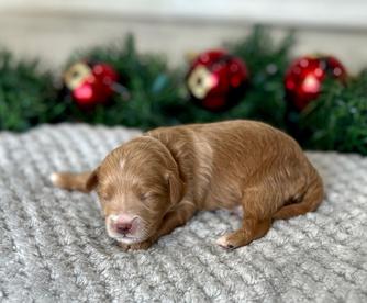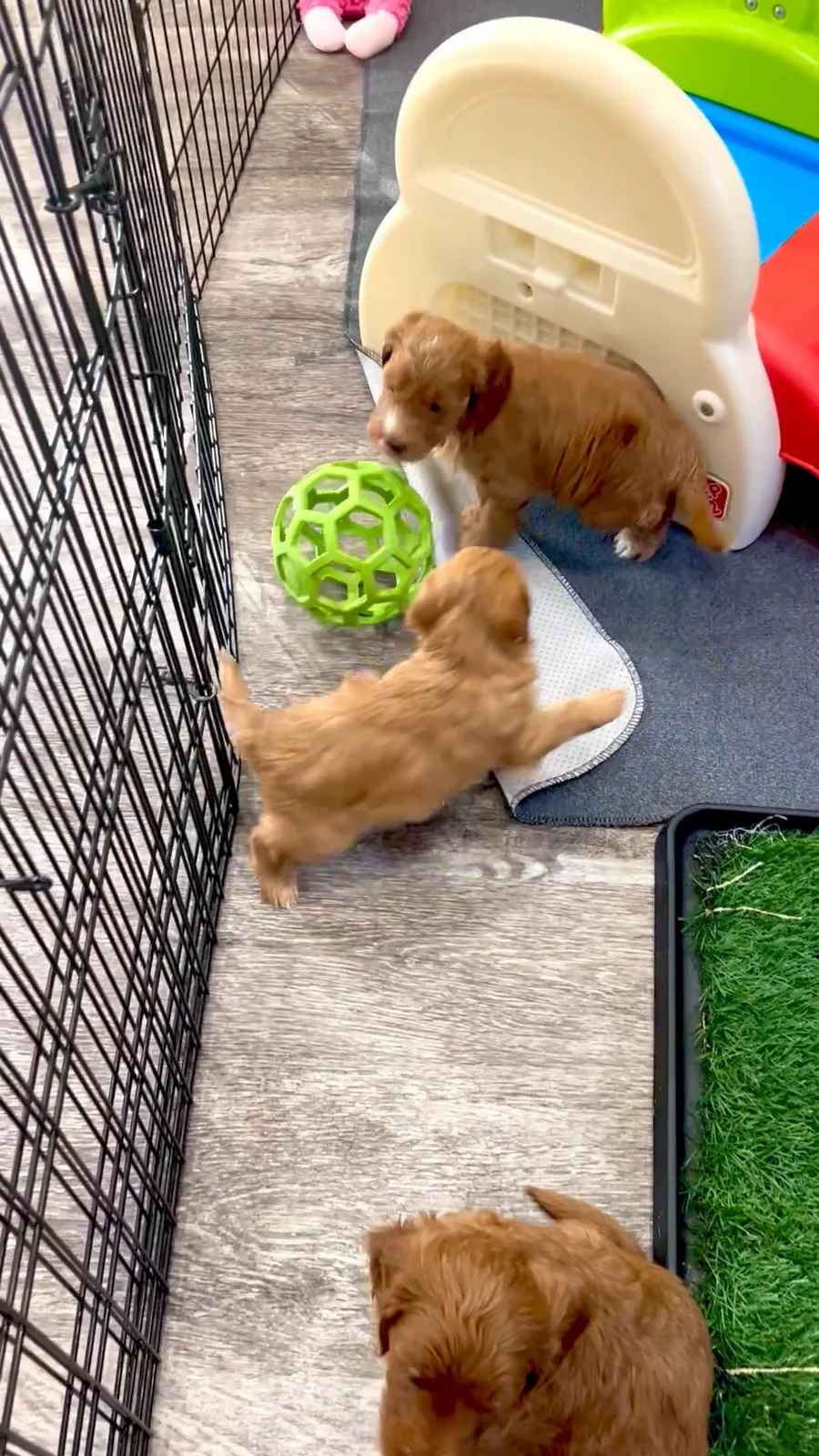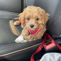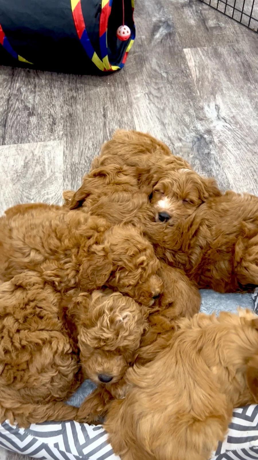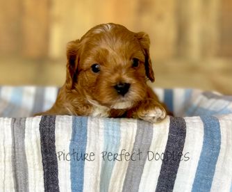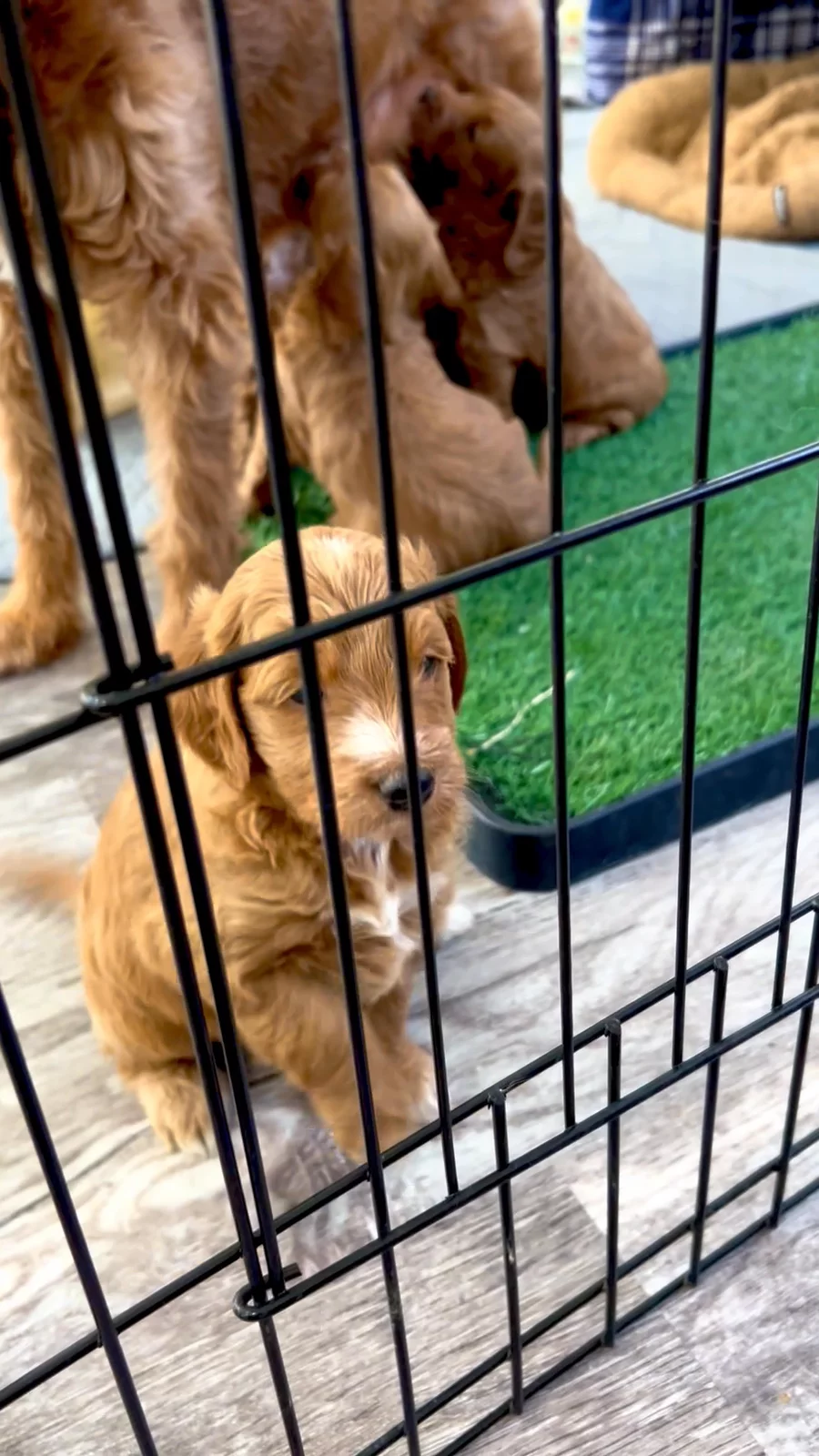 Our Goldendoodle puppies include apricot, red, and parti. Cavapoo puppies include red, cream, and apricot. Colors will vary depending on the parent dogs.