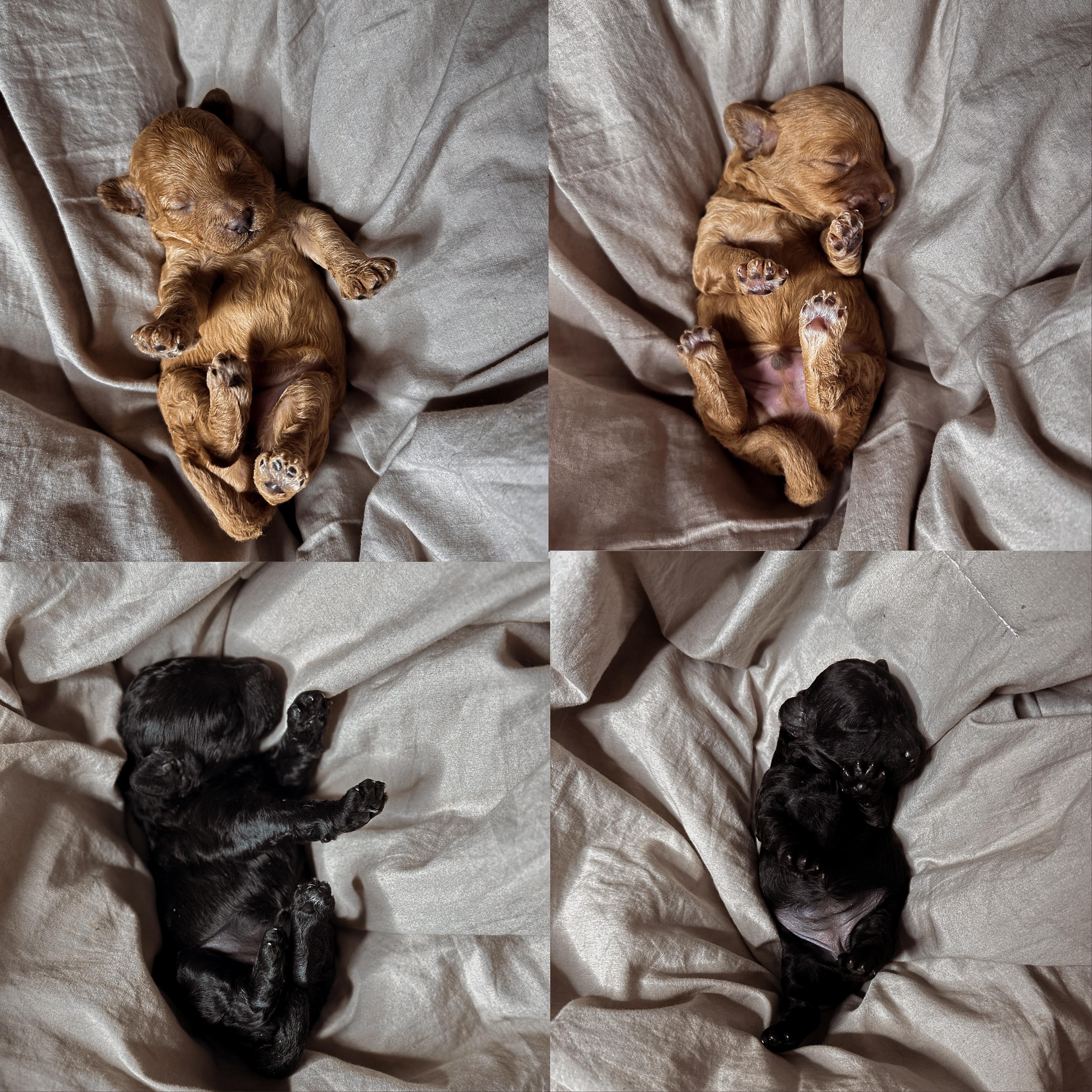 Our puppies include apricot, brown, and black. Colors will vary depending on the parent dogs.
