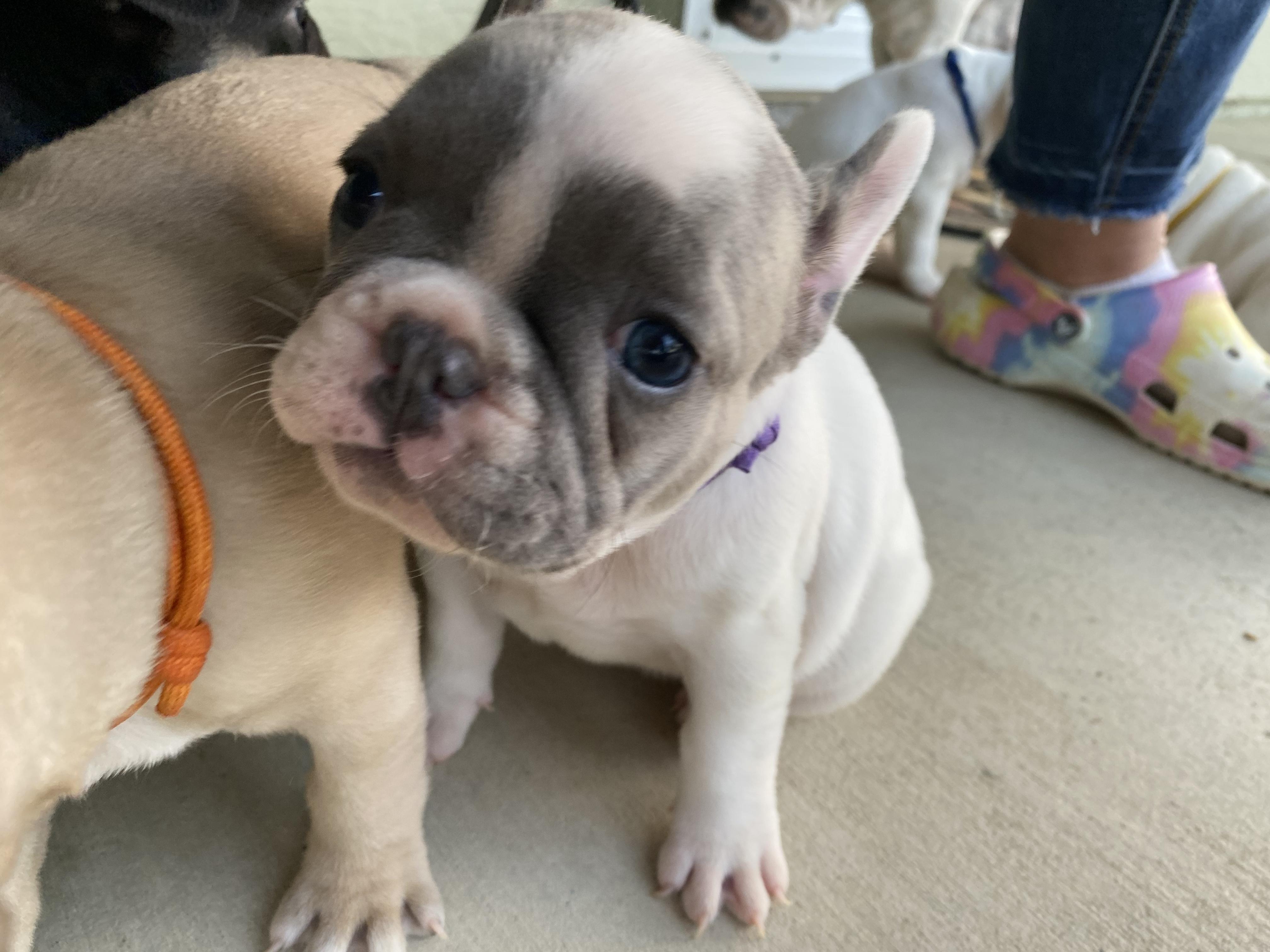 Our puppies include tricolors, fawn and white, black and white, and blue fawn. Colors will vary depending on the parent dogs.
