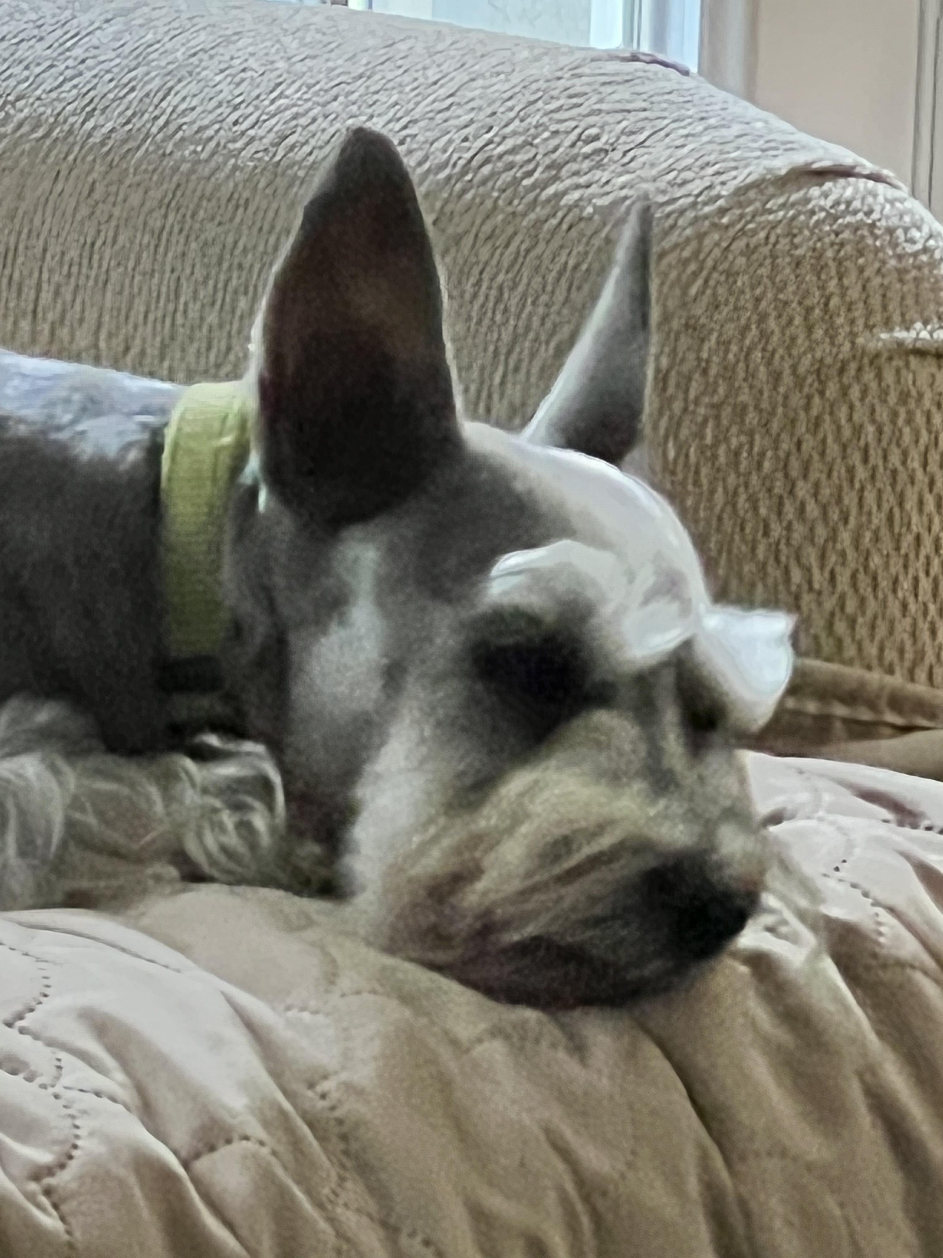 SAVI is a female Miniature Schnauzer. Carefully selected as a great representative of her breed, Julie decided to make her part of their program. Julie has passed Good Dog’s screening process, which involved a review of their breeding practices, environment, and the mental and physical health of their dogs.