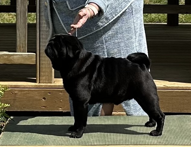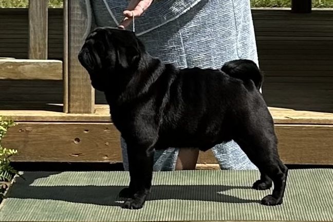 Adults are all NN for PDE. Longevity. I started breeding in the 60's. Have many Champions in my pedigrees. I breed to the AKC Pug Standard.