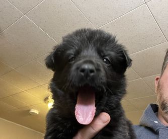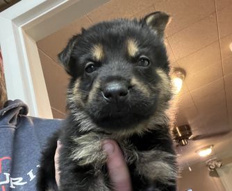 Our puppies include black and black and cream. Colors will vary depending on the parent dogs.