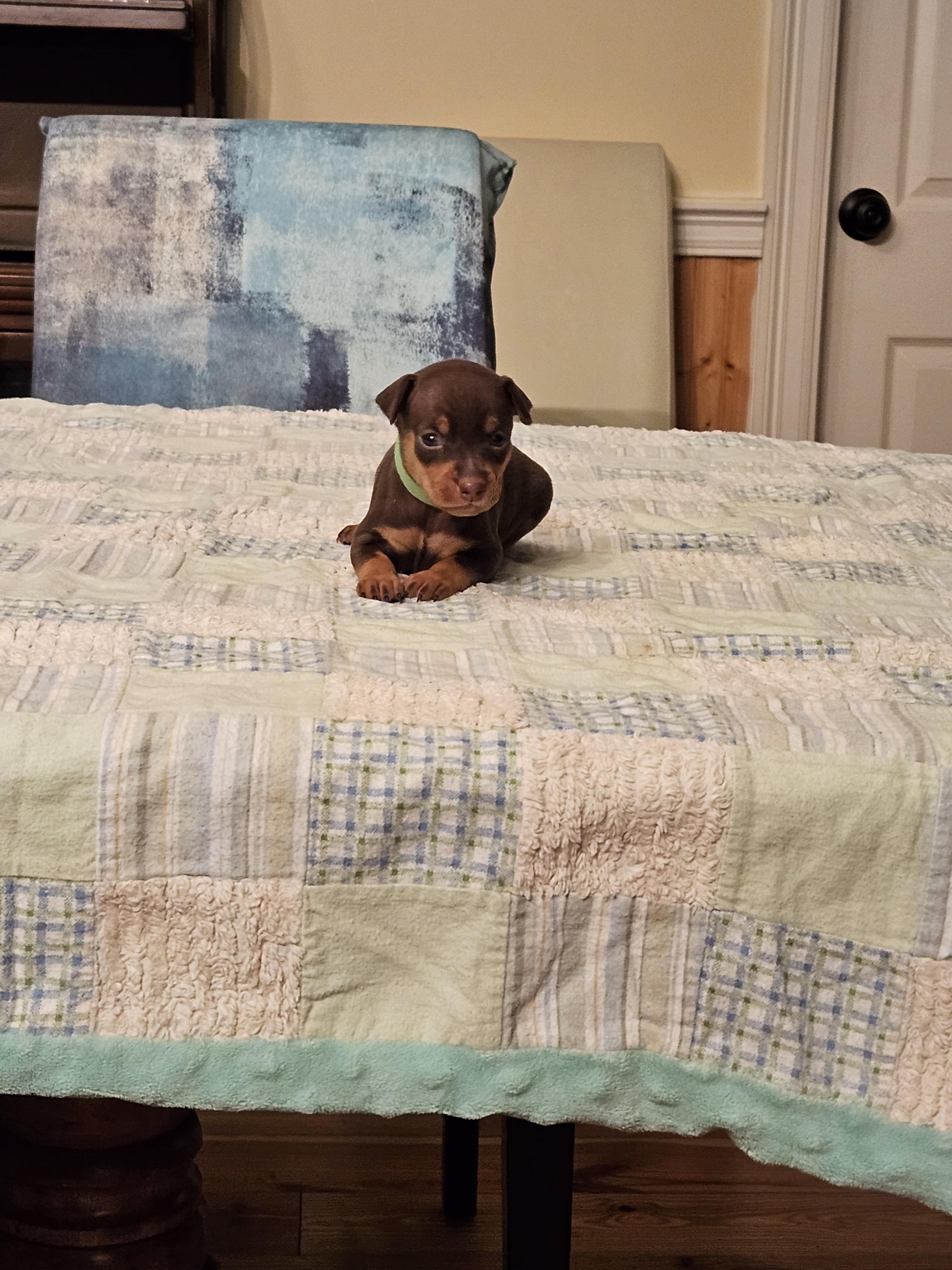My husband and I were looking for a Miniature Pinscher and Sharon was awesome! She was super flexible to our schedule. She is extremely passionate about what she does and it is so apparent!