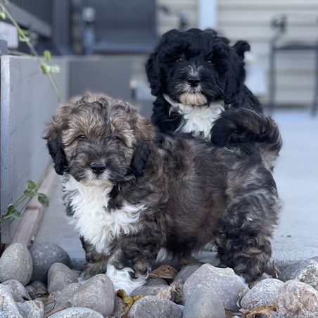 Our puppies include mini and medium sizes. Sizes will vary depending on the parent dogs.