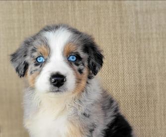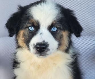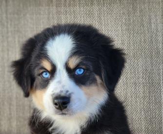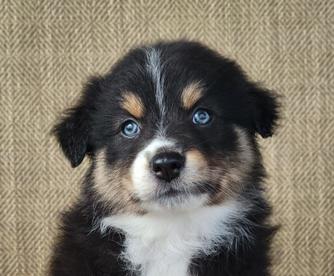 A blue-eyed, black tricolor Australian Shepherd is both majestic and magnetic — the icy blue eyes framed by a deep black, white, and copper coat create a look that’s almost otherworldly. Their beauty is matched only by their intelligence and devotion, making them one of the most captivating companions you can have.