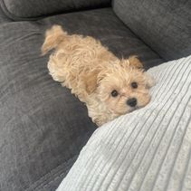 Teddy is a 4 pound toy poodle, he loves being around people and is very outgoing !