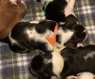 Our parent dogs live in our home with us. They are a part of our every day lives and active family members, not housed in kennels. We start working with our puppies soon after birth. Your puppy will come to your home having been exposed to the in and outs of daily family life (doorbells, vacuum cleaners, etc.) all in a positive way. We start potty training skills, crate training and leash work.
