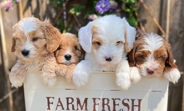 Our puppies include caramel cream, caramel, caramel red, red, apricot, cream, chocolate, black, and tri-color. Colors will vary depending on the parent dogs.