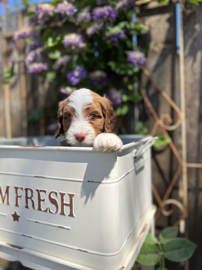 Tootsie is a female Australian Labradoodle. Carefully selected as a great representative of her breed, Heidi decided to make her part of their program. Heidi has passed Good Dog’s screening process, which involved a review of their breeding practices, environment, and the mental and physical health of their dogs.