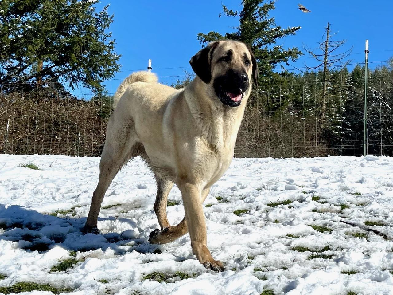 Beautiful, large and very friendly Anatolian Shepherd who is playful and very thick framed. Tail is curly, coat is smooth and she has much black on her face and ears. Her ears are large and long framing her face wonderfully.