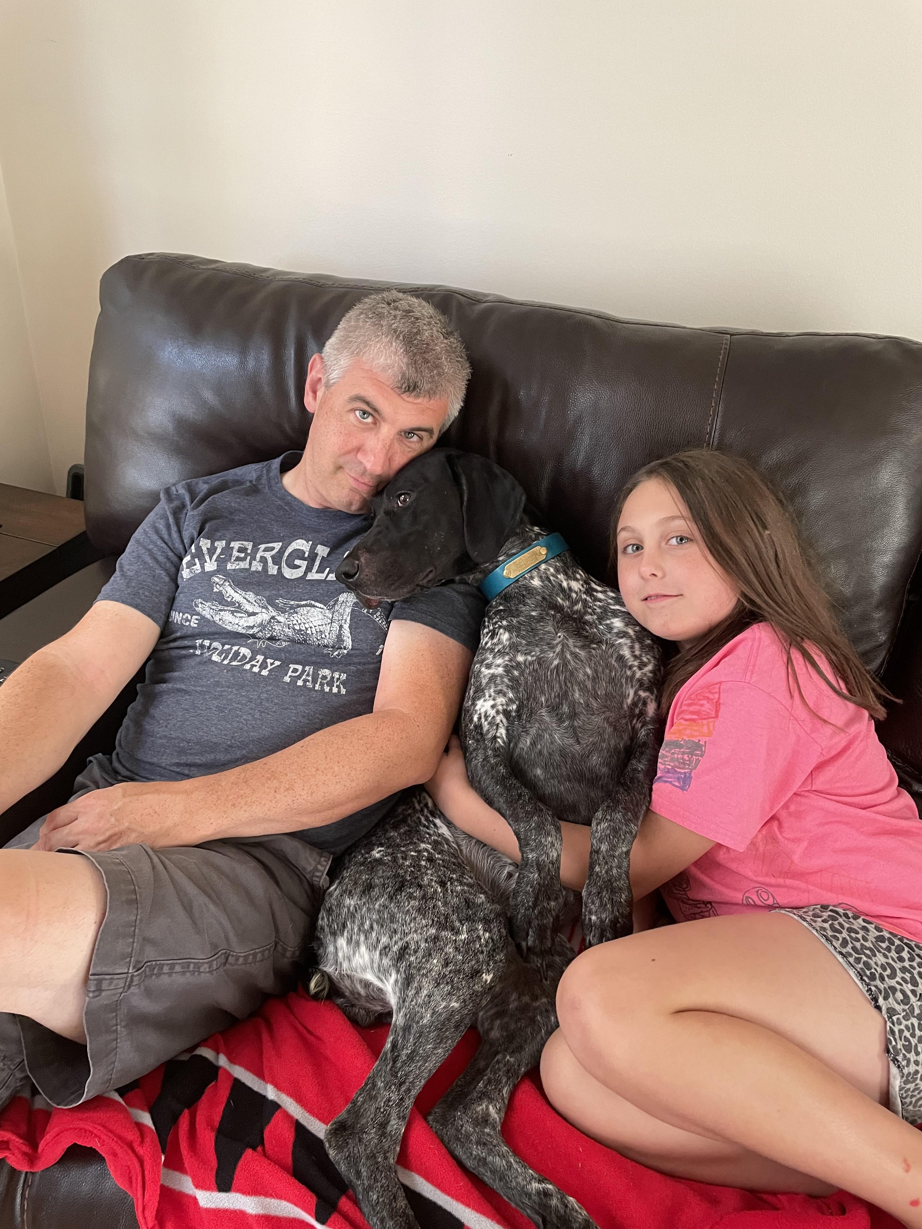 Sadie is a female German Shorthaired Pointer. Carefully selected as a great representative of her breed, Martha decided to make her part of their program. Martha has passed Good Dog’s screening process, which involved a review of their breeding practices, environment, and the mental and physical health of their dogs.