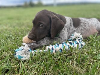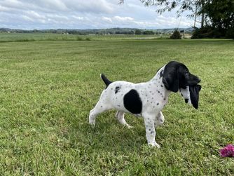 Annie is a female German Shorthaired Pointer. Carefully selected as a great representative of her breed, Martha decided to make her part of their program. Martha has passed Good Dog’s screening process, which involved a review of their breeding practices, environment, and the mental and physical health of their dogs.