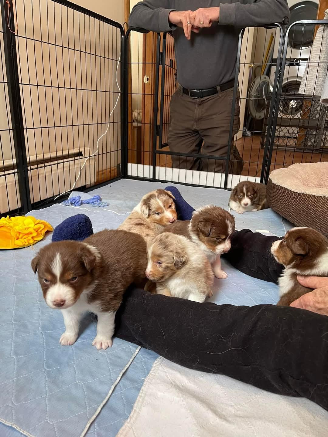 I aim to breed to the Australian Shepherd breed standard and produce puppies with loving personalities. I strive to breed healthy, quality pups that can fit any lifestyle. I take pride in raising well-tempered puppies who can excel in work, show, or as beloved companions. I can provide extensive knowledge and guidance for any family looking to bring home one of these wonderful dogs!