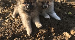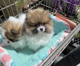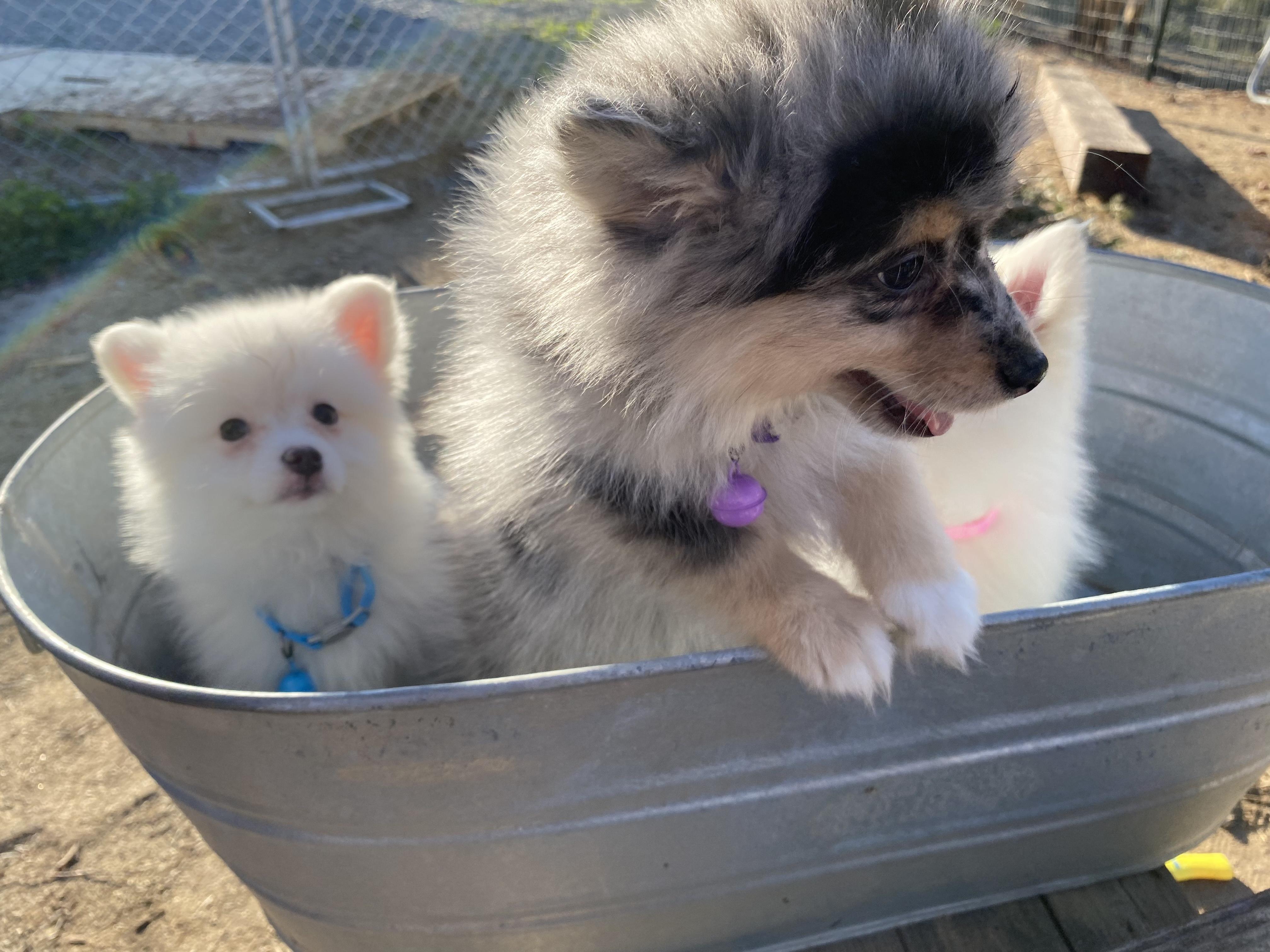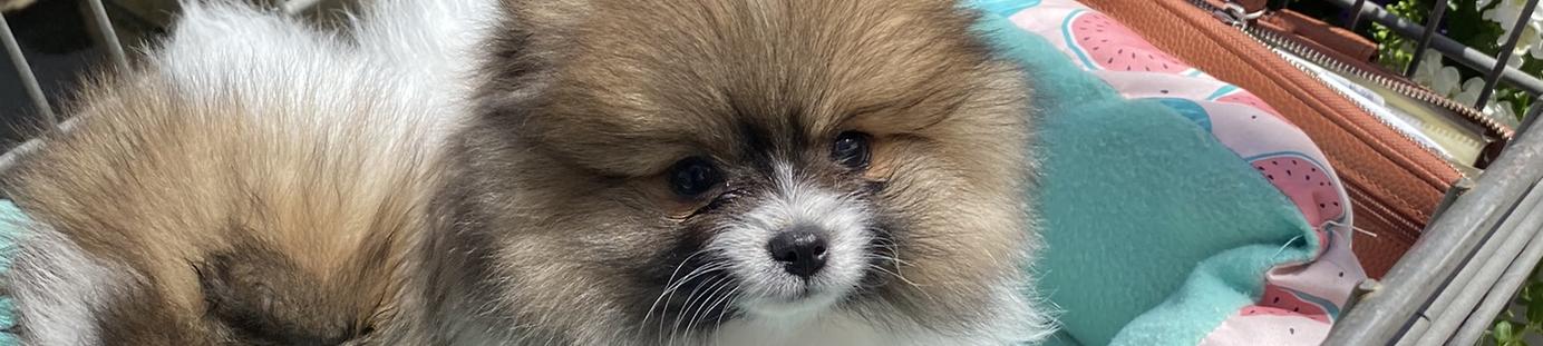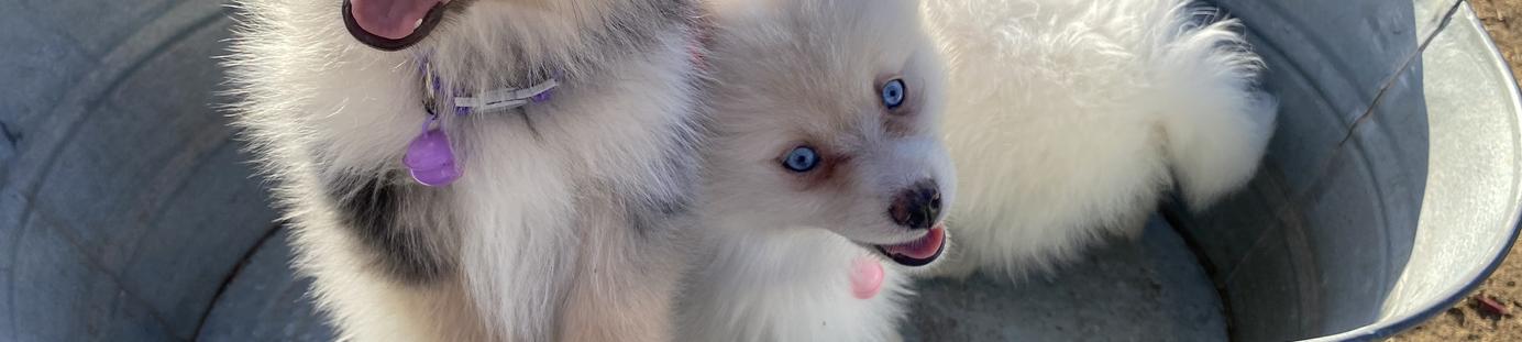 Our Pomeranian puppies include cream, black, blue, white, chocolate, blue merle, cream sable, red sable, orange sable, black and tan, chocolate sable, chocolate merle, chocolate and tan, and beaver sable. Pomsky puppies include white, black, black and white, chocolate, merle, and red and white. Colors will vary depending on the parent dogs.
