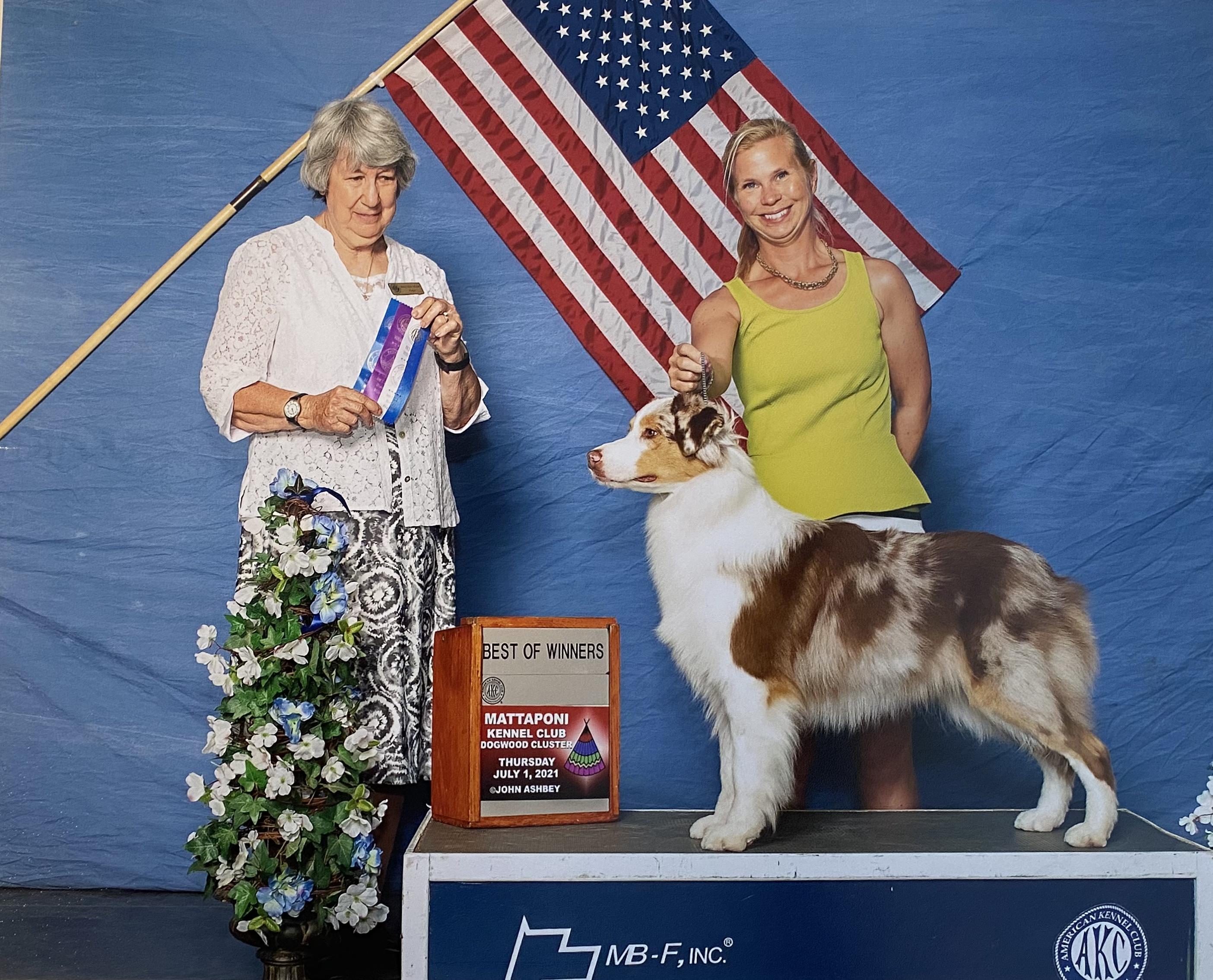 Shimmer is a female Australian Shepherd. Carefully selected as a great representative of her breed, Janet decided to make her part of their program. Janet has passed Good Dog’s screening process, which involved a review of their breeding practices, environment, and the mental and physical health of their dogs.