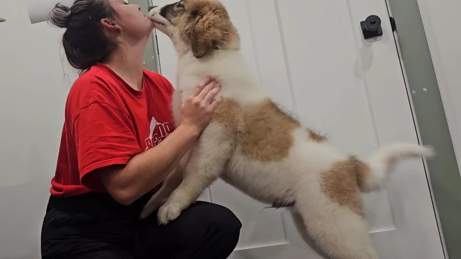 We're working hard to bring you updated photos of the puppies that are still available, but it's important to enjoy some puppy love as well! Perogi was more interested in giving kisses than taking photos!