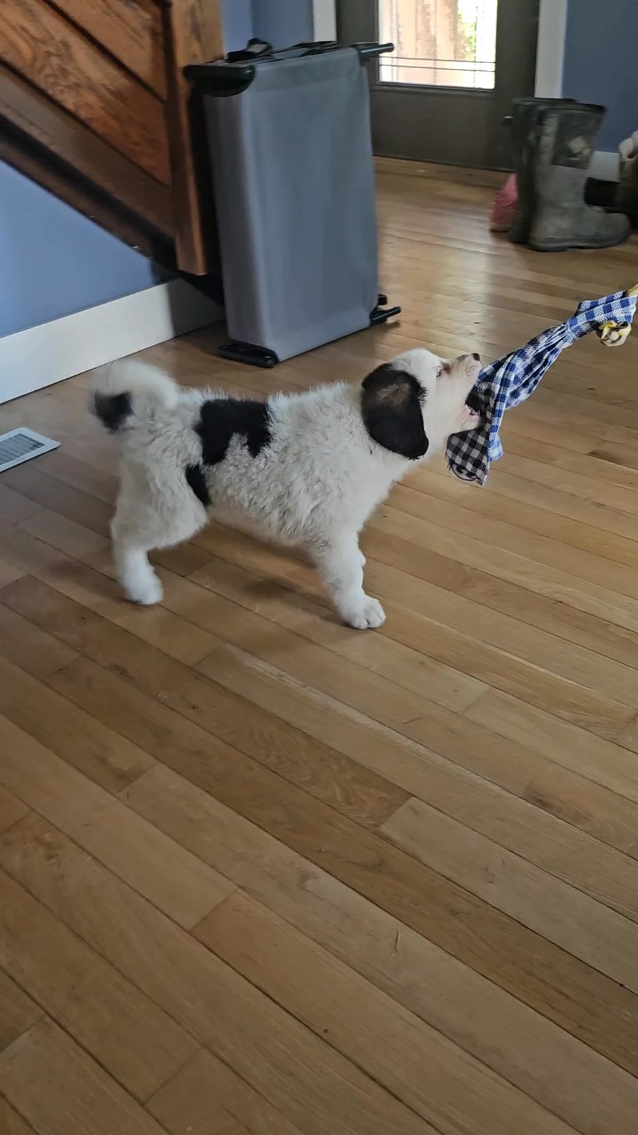 We had our Volhard's temperment testing yesterday! Unsurprisingly, most of us were very calm and unbothered by the test elements. But a few of us thought the ball and dish towel element was fun! We all bonded well with the strange lady testing us. Cuddle time was the best part!